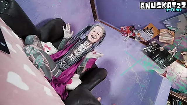 Ink-covered beauty’s livestream featuring anal fun
