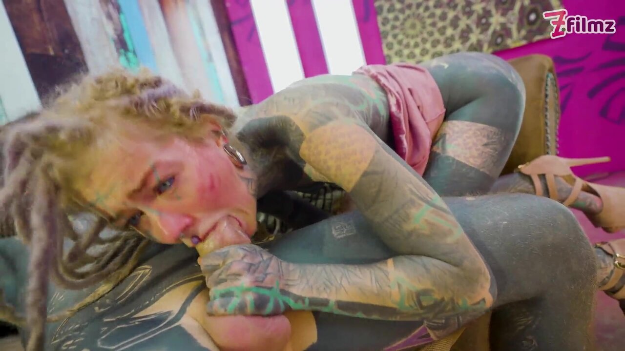 Steamy ALT dreadhead girl gives a hot oral and rides his huge shaft in