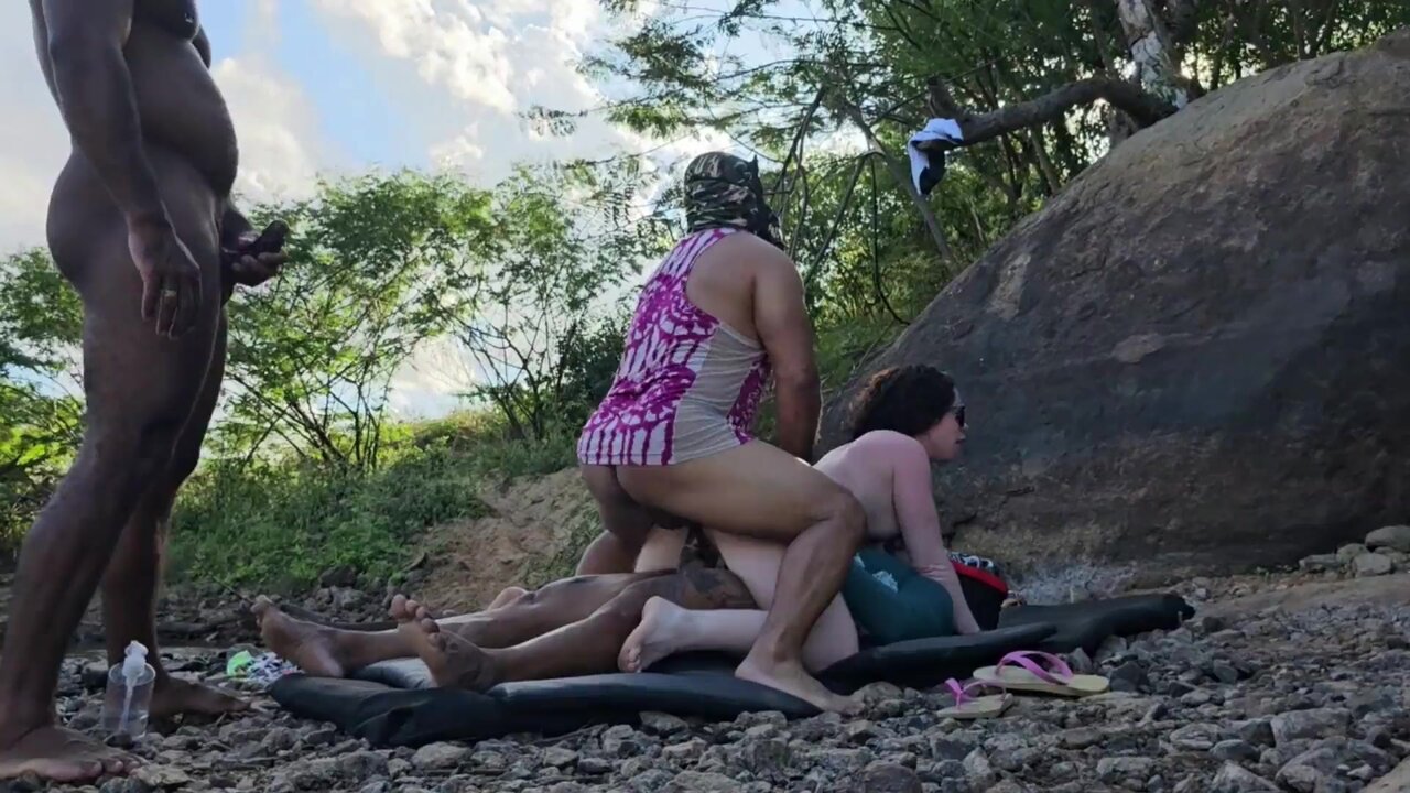 A curvy and sultry beauty is caught red-handed enjoying her friend's massive black member buried completely inside her wife's butt. She can't help but get turned on by the sight of this BBC action. They both ride the dick together before he loads in her wife's snatch, leaving them all satisfied with a creamy finish.
